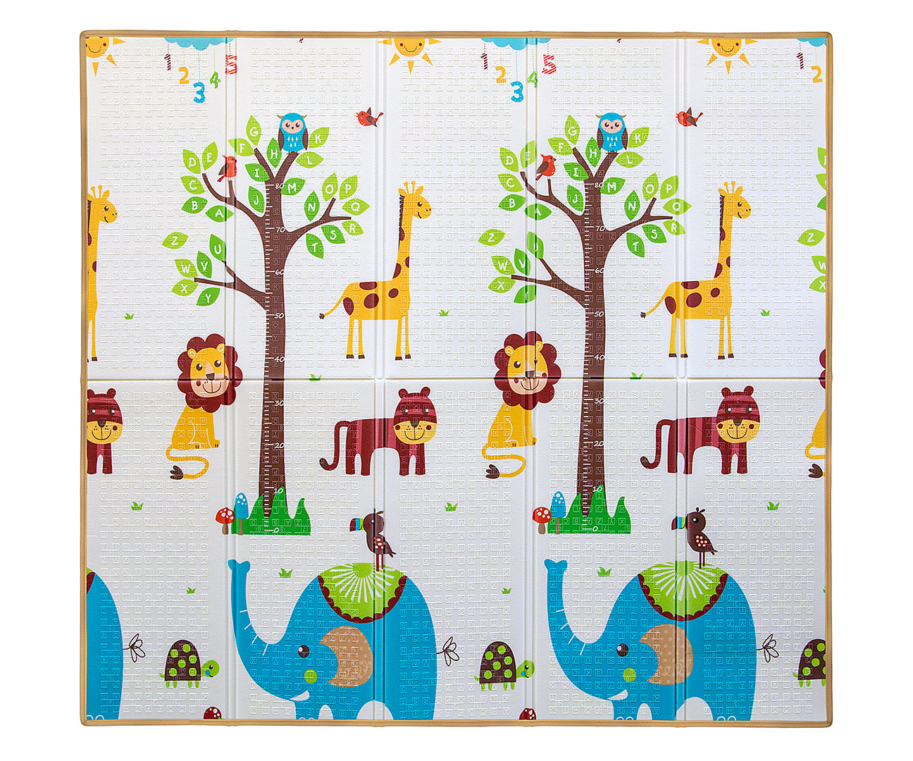 A kétoldalas, hajtogatott habszivacs szőnyeg biztonságos és kényelmes gyermeke számára. A szőnyeg antiallergén és csúszásgátló tulajdonságokkal rendelkezik. A szőnyeg nagyon jól szigetel a hideg padlótól, és vízálló felületének köszönhetően könnyen tisztítható, és ideális a szoba berendezéséhez. A nagyfokú rugalmasságnak köszönhetően nagyon jól megvédi gyermekünket az esésektől.