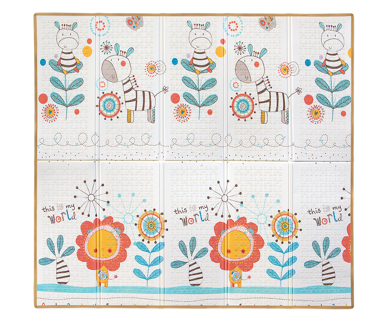 A kétoldalas, hajtogatott habszivacs szőnyeg biztonságos és kényelmes gyermeke számára. A szőnyeg antiallergén és csúszásgátló tulajdonságokkal rendelkezik. A szőnyeg nagyon jól szigetel a hideg padlótól, és vízálló felületének köszönhetően könnyen tisztítható, és ideális a szoba berendezéséhez. A nagyfokú rugalmasságnak köszönhetően nagyon jól megvédi gyermekünket az esésektől.