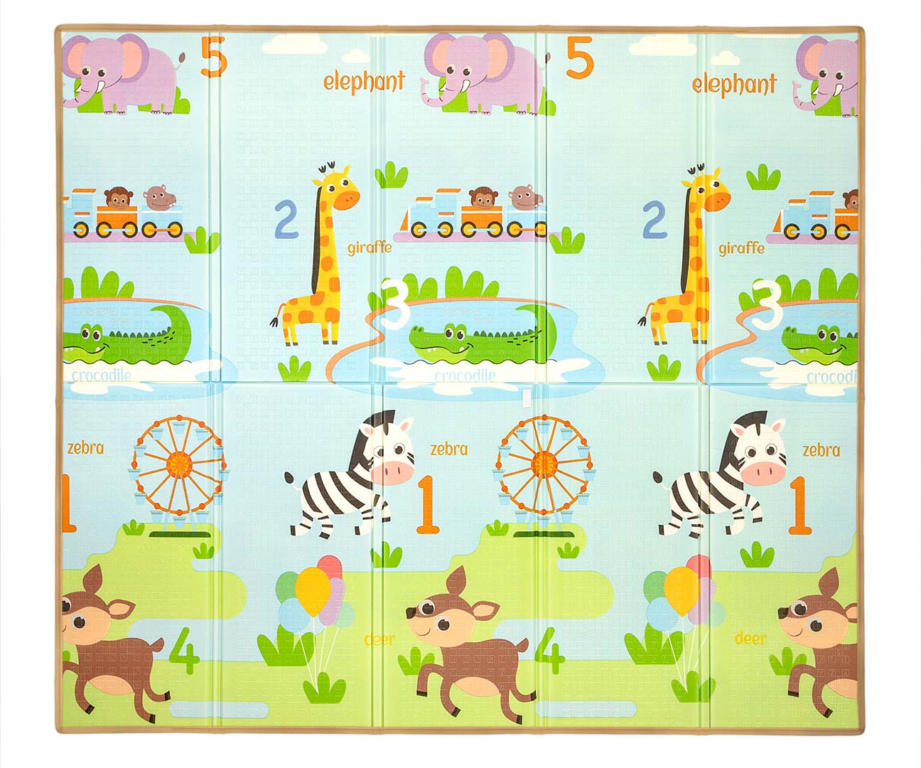 A kétoldalas, hajtogatott habszivacs szőnyeg biztonságos és kényelmes gyermeke számára. A szőnyeg antiallergén és csúszásgátló tulajdonságokkal rendelkezik. A szőnyeg nagyon jól szigetel a hideg padlótól, és vízálló felületének köszönhetően könnyen tisztítható, és ideális a szoba berendezéséhez. A nagyfokú rugalmasságnak köszönhetően nagyon jól megvédi gyermekünket az esésektől.