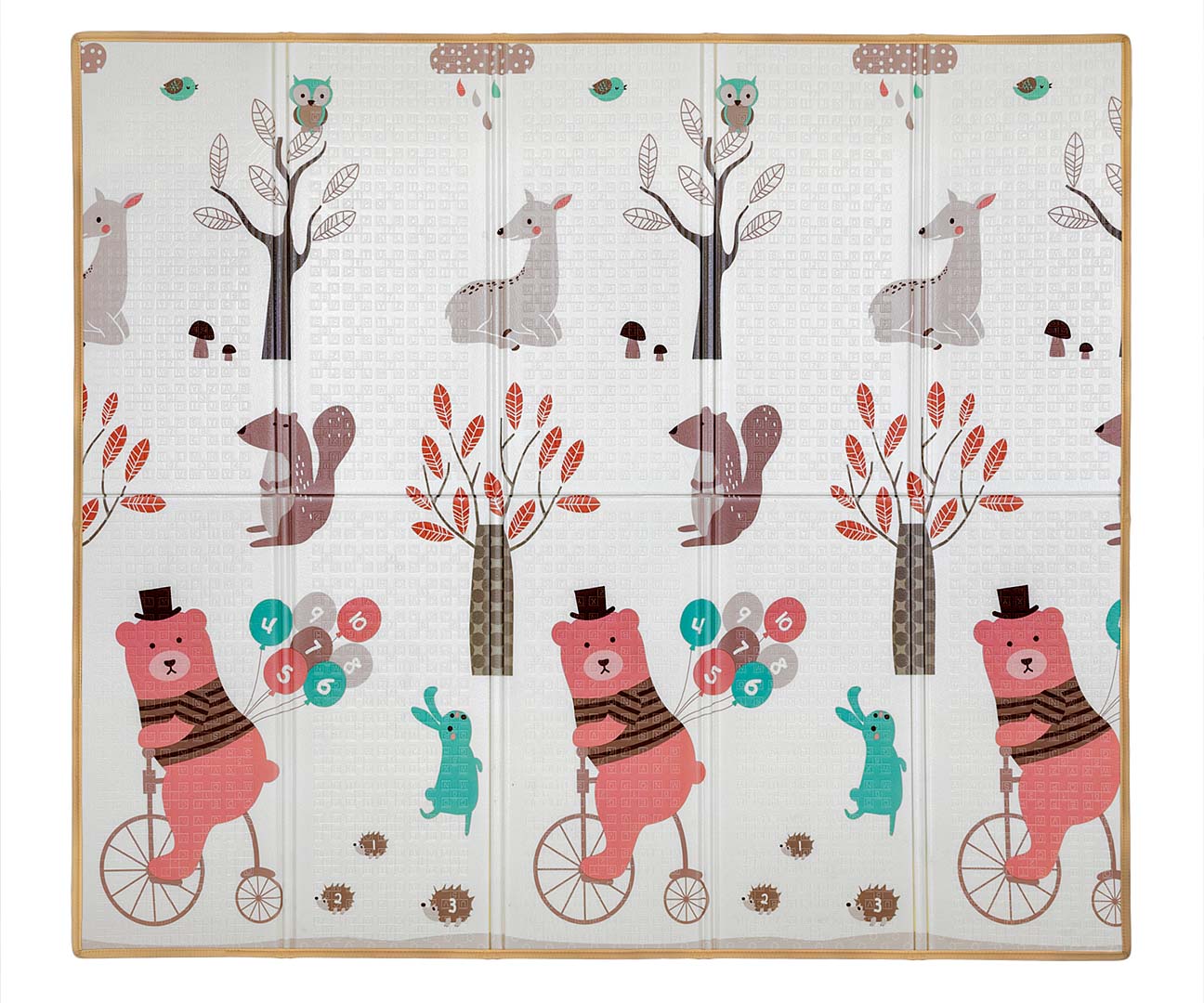 A kétoldalas, hajtogatott habszivacs szőnyeg biztonságos és kényelmes gyermeke számára. A szőnyeg antiallergén és csúszásgátló tulajdonságokkal rendelkezik. A szőnyeg nagyon jól szigetel a hideg padlótól, és vízálló felületének köszönhetően könnyen tisztítható, és ideális a szoba berendezéséhez. A nagyfokú rugalmasságnak köszönhetően nagyon jól megvédi gyermekünket az esésektől.