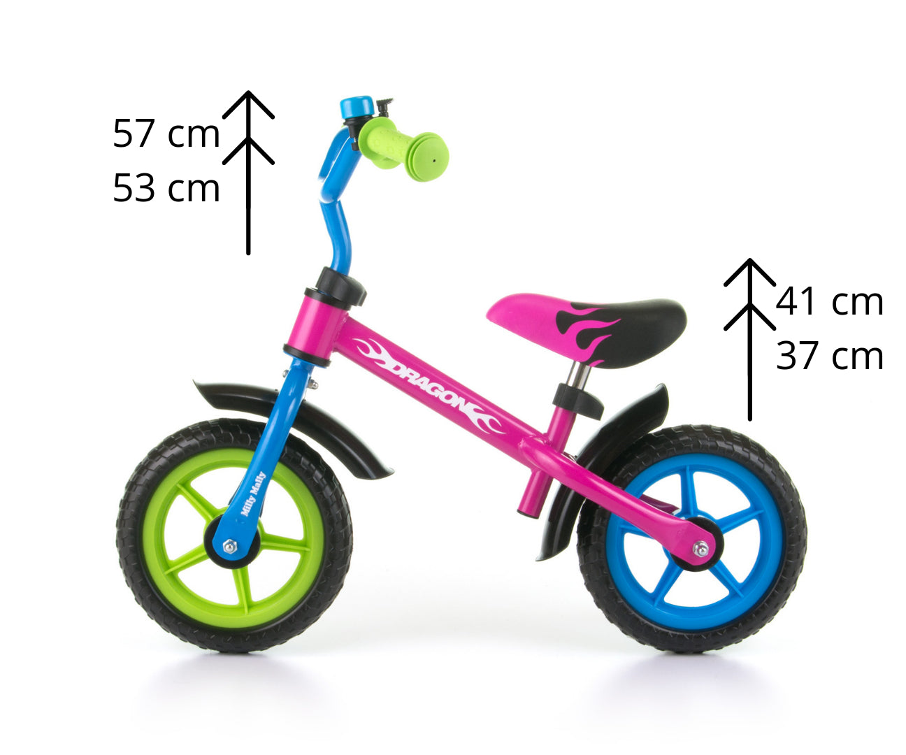 A Dragon futóbiciklit kisgyermekek számára tervezték, hogy megtanulják a stabilitást!!! Ez a legjobb alternatíva az oldalkerekes kerékpárokhoz képest, így a klasszikus kerékpározás szórakoztatóvá és könnyen elsajátíthatóvá válik. A kerékpár pedálmentes, így gyermeke az egyensúly és a haladási irány megtartására koncentrálhat. A kormányszög rögzítése jó választás azoknak a babáknak, akik most kezdik a kalandjukat a biciklivel (és nem képesek megtartani a kormányt).