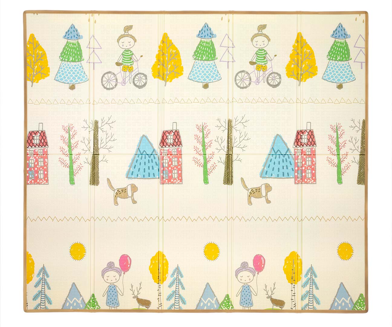A kétoldalas, hajtogatott habszivacs szőnyeg biztonságos és kényelmes gyermeke számára. A szőnyeg antiallergén és csúszásgátló tulajdonságokkal rendelkezik. A szőnyeg nagyon jól szigetel a hideg padlótól, és vízálló felületének köszönhetően könnyen tisztítható, és ideális a szoba berendezéséhez. A nagyfokú rugalmasságnak köszönhetően nagyon jól megvédi gyermekünket az esésektől.