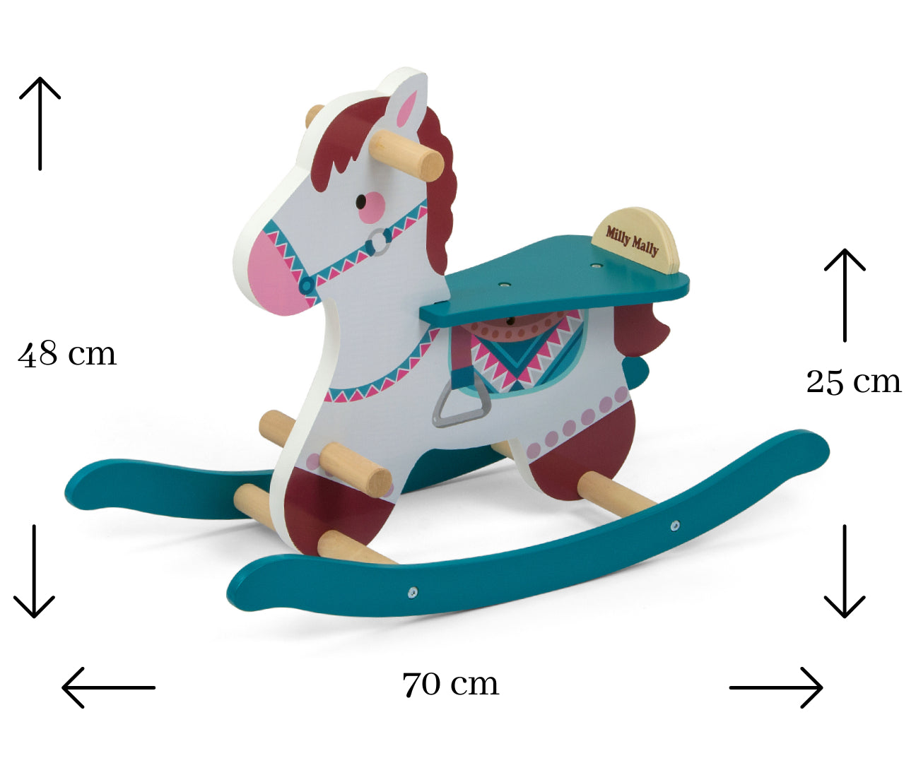 A Lucky hintaló kényelmes és klasszikus játék. Az ülés dőlésszöge kényelmet és biztonságot nyújt gyermekeinknek. A faló fejrészénél fogantyúk és lábtartó található, amelyek segítenek megtámasztani az egyensúlyt játék közben. A ló 12 hónapos kortól ajánlott.