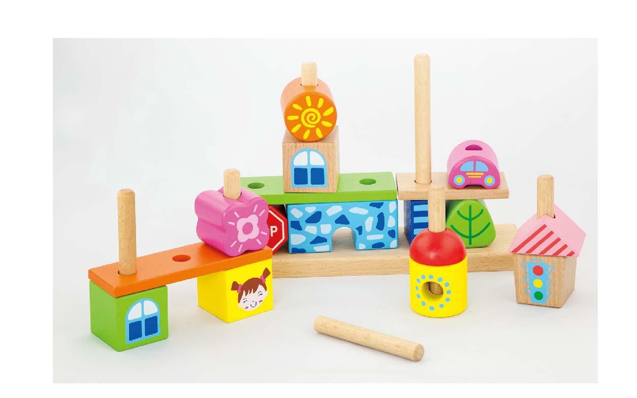 Ez a négysoros mini város színes, kiváló minőségű fából készült kockákból épül fel. 8 egymásra rakható pálcát, 4 különböző mintát és 14 színes kockát tartalmaz. Keverd és párosítsd a darabokat, hogy elmeséld a városi élet történetét.