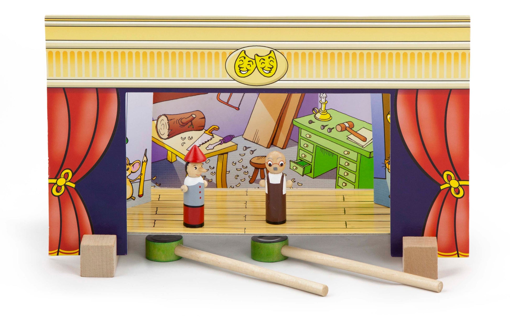 A színházterem könnyen összecsukható, a háttér pedig kicserélhető – egy kedvenc meséhez. A színházteremben való szórakozás ideális családi estékre.