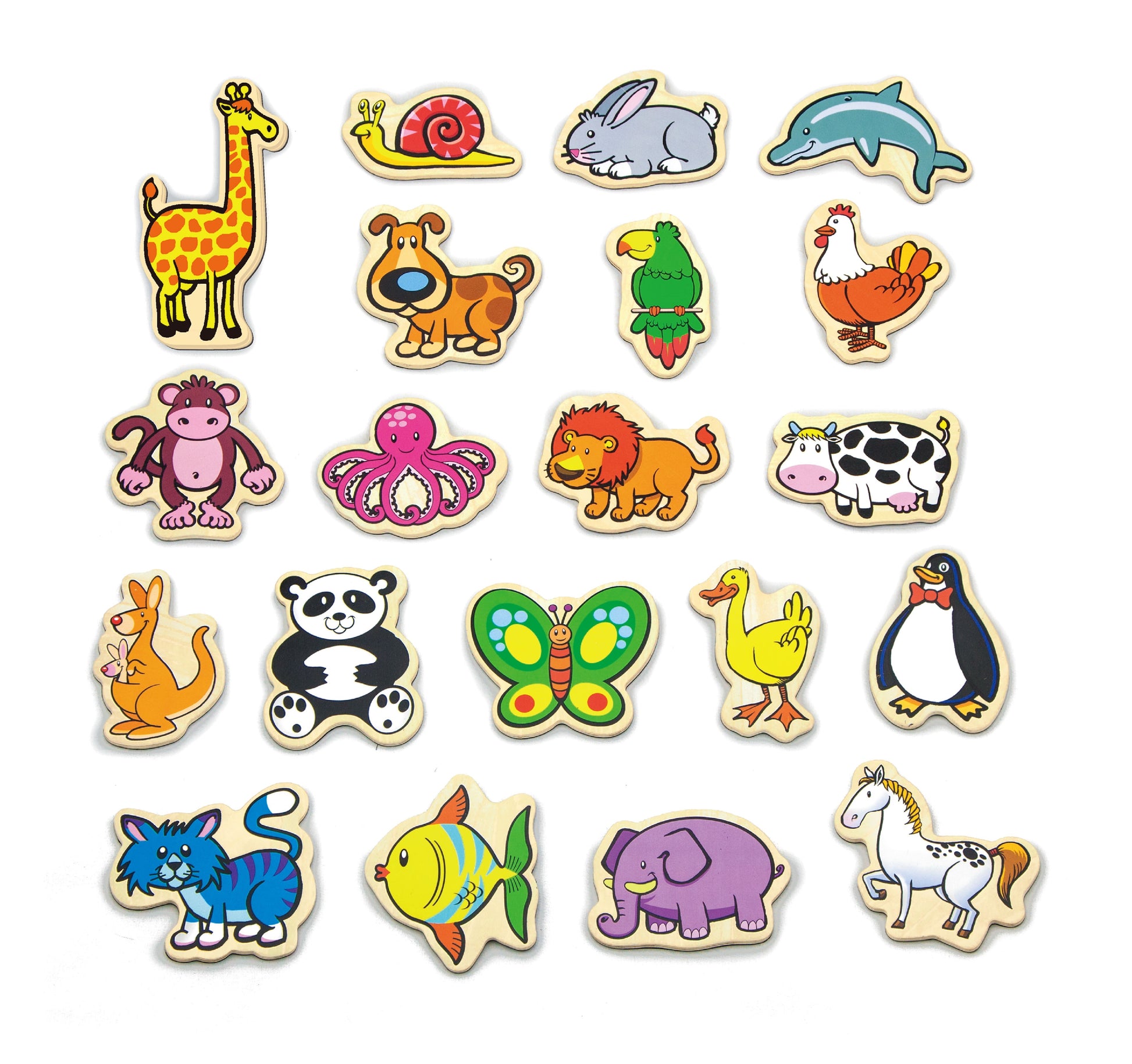 Színes mágneses állatok, melyeket hűtőre vagy bármilyen mágneses felületre lehet ragasztani. Szép színes doboz a könnyű tárolás érdekében.